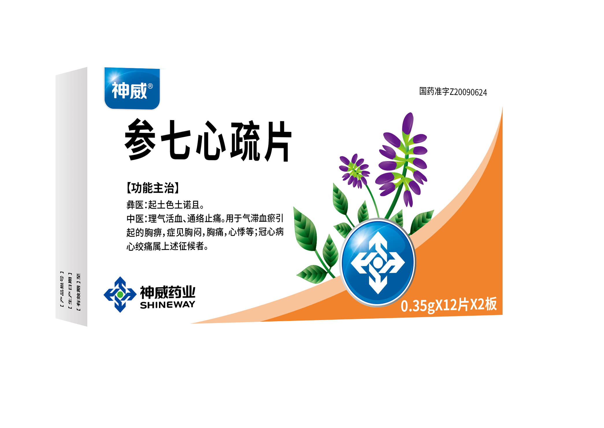 彝医:起土色土诺且。 中医:理气活血,通络止痛。用于气滞血瘀引起的胸痹,症见胸闷、胸痛、 心悸等;冠心病心绞痛属上述证候者。